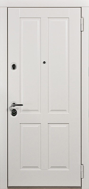 Белая входная дверь с зеркалом для коттеджа №13 идеально сочетает в себе элегантность и функциональность. Панели МДФ ПВХ придают ей стильный внешний вид, а также обеспечивают долговечность и устойчивость к механическим повреждениям. Зеркальная вставка не только визуально расширяет пространство, но и добавляет особого шарма. Конструкция из профильной трубы 50х25 мм и листа металла толщиной 2 мм делает дверь прочной и надежной, а ребра жесткости из профильных труб 40х25 мм добавляют дополнительную стабильность. Встроенные замки "Просам" и "Мосрентген" с тремя ригелями обеспечат высокий уровень безопасности. Резиновый уплотнитель с двумя контурами защищает от холода и шума, обеспечивая комфорт в вашем доме. Возможность комбинирования отделки с добавлением стеклопакета, кованых элементов или зеркала позволяет адаптировать дверь под любые пожелания. Белая входная дверь с зеркалом для коттеджа №13 от производителя: быстрое изготовление и монтаж в Котельниках, индивидуальные размеры, широкий выбор материалов и фурнитуры, официальная гарантия до 10 лет.