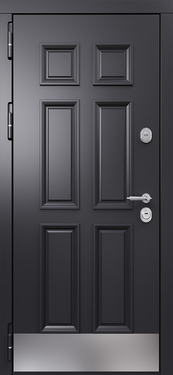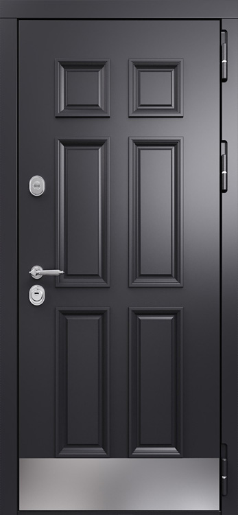 Входная дверь с МДФ №566 создана для тех, кто ценит прочность металла и уютный внешний вид в одном решении. Она одинаково хорошо вписывается в частный дом, квартиру или офис, подчеркивая солидность пространства и обеспечивая надежную защиту. Каркас и полотно собраны из профильных труб, усиленных ребрами жесткости, а стальной лист толщиной 2 мм гарантирует устойчивость к взлому и длительный срок службы. С обеих сторон дверь облицована МДФ панелями с ПВХ-покрытием, что делает поверхность более устойчивой к истиранию и мелким повреждениям, сохраняя привлекательность даже при интенсивной эксплуатации. Панели легко очищаются и не выгорают на солнце, благодаря чему дверь подходит и для уличной установки. Два контура уплотнения надежно защищают от сквозняков и посторонних запахов, а при необходимости можно дополнительно усилить конструкцию тепло- и шумоизоляцией. Модель №566 сочетает в себе сдержанный дизайн и функциональность, делая ее практичным выбором для самых разных помещений. Входная дверь с МДФ №566 от производителя: быстрое изготовление и монтаж в Котельниках, индивидуальные размеры, широкий выбор материалов и фурнитуры, официальная гарантия до 10 лет.