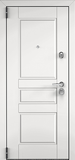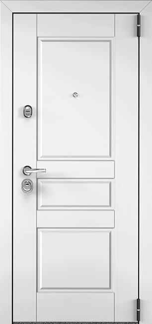 Белая металлическая дверь входная для дома №33 выделяется своим свежим и современным обликом. Универсальный белый цвет делает её уместной как в частном коттедже, так и в квартире или офисе, визуально добавляя простора и подчеркивая аккуратность фасада или интерьера. Конструкция двери основана на стальном листе толщиной 2 мм и усилена профильными трубами, что гарантирует надежность и устойчивость к нагрузкам. Важная особенность модели — наличие терморазрыва в полотне и коробке: благодаря этому дверь не промерзает в зимний период, исключается конденсат и сохраняется комфорт внутри помещения. Внешняя и внутренняя отделка выполнена из МДФ с ПВХ-покрытием, которое защищает поверхность от влаги и механических повреждений, сохраняя первозданный вид надолго. Два контура уплотнителя обеспечивают герметичность и дополнительную защиту от сквозняков. Эта дверь удачно сочетает эстетику и практичность, создавая надежный вход в любое жилище. Белая металлическая дверь входная для дома №33 от производителя: быстрое изготовление и монтаж в Котельниках, индивидуальные размеры, широкий выбор материалов и фурнитуры, официальная гарантия до 10 лет.