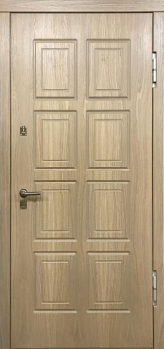 Дверь входная в частный дом №44 сочетает в себе надёжность стальной основы и практичность декоративной отделки. Каркас и полотно из профильной трубы с листом металла толщиной 2 мм обеспечивают устойчивость к нагрузкам, а рёбра жёсткости повышают общую прочность конструкции. В коробке и полотне предусмотрен терморазрыв, который предотвращает промерзание и помогает сохранять тепло внутри помещения, что особенно важно для частных домов и коттеджей. Снаружи и внутри дверь облицована МДФ-накладками, материалом, устойчивым к мелким повреждениям и удобным в уходе, благодаря чему изделие долго сохраняет презентабельный вид. Двойной контур уплотнителей блокирует сквозняки и влагу, создавая дополнительный комфорт. Для безопасности установлены два замка — сувальдный Просам и цилиндровый Мосрентген, оба с трёхригельной системой. Модель легко адаптируется под пожелания заказчика: можно изменить отделку или добавить декоративные элементы, превращая дверь в индивидуальное решение для дома, офиса или квартиры. Дверь входная в частный дом №44 от производителя: быстрое изготовление и монтаж в Котельниках, индивидуальные размеры, широкий выбор материалов и фурнитуры, официальная гарантия до 10 лет.