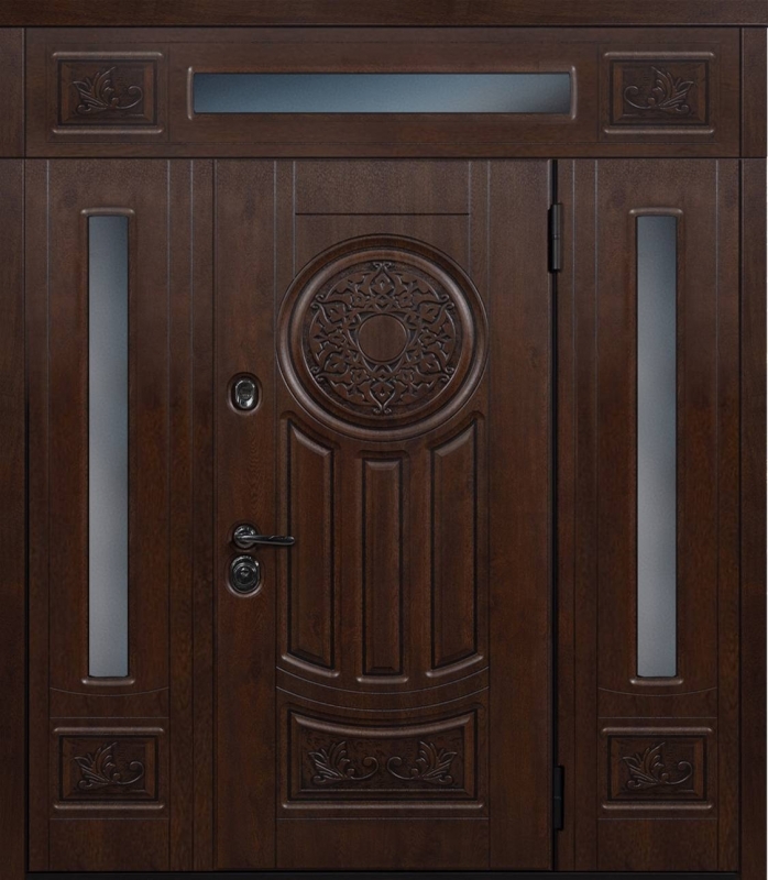 Эта нестандартная парадная дверь с фрамугой №6 — отличный выбор для тех, кто ценит элегантность и долговечность. Внешняя и внутренняя отделка из МДФ придает дверям стильный и современный вид, а также защиту от механических повреждений. МДФ устойчива к царапинам и вмятинам, что делает дверь идеальной для долгосрочной эксплуатации. Каркас из профильной трубы 50х25 мм и лист металла толщиной 2 мм обеспечивают прочность и надежность, а ребра жесткости из профильных труб гарантируют дополнительную устойчивость. В двери установлены блокираторы, два контура уплотнителей из резины, что повышает звуко- и теплоизоляцию. Замки от известных производителей, таких как Просам и Мосрентген, обеспечат надежную защиту. Возможность комбинировать отделку, добавлять зеркало, стеклопакет или кованые элементы позволяет легко адаптировать дверь под любые предпочтения. Нестандартная парадная дверь с фрамугой №6 от производителя: быстрое изготовление и монтаж в Котельниках, индивидуальные размеры, широкий выбор материалов и фурнитуры, официальная гарантия до 10 лет.