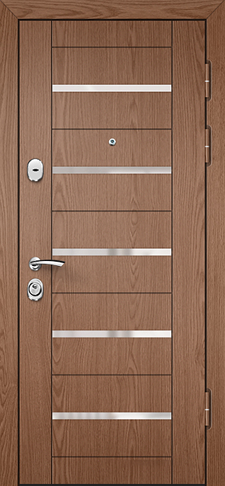 Входная дверь с зеркальным полотном №53 выделяется тем, что зеркало занимает почти всю внутреннюю поверхность, превращая дверь не просто в защитный элемент, а в полноценную часть интерьера. Такое решение особенно удобно для квартир и офисов, где зеркало необходимо ежедневно, а отдельное место для него найти непросто. Каркас изготовлен из профильной трубы и усилен рёбрами жёсткости, стальной лист толщиной 2 мм обеспечивает прочность и устойчивость к нагрузкам. В отделке использованы панели МДФ с ПВХ-покрытием, которые стойко переносят повседневные испытания и сохраняют внешний вид долгие годы. Два контура уплотнения защищают от сквозняков и уличного шума, а возможность выбрать размеры и направление открывания позволяет адаптировать модель для частных домов и городских квартир. Входная дверь с зеркальным полотном №53 от производителя: быстрое изготовление и монтаж в Котельниках, индивидуальные размеры, широкий выбор материалов и фурнитуры, официальная гарантия до 10 лет.