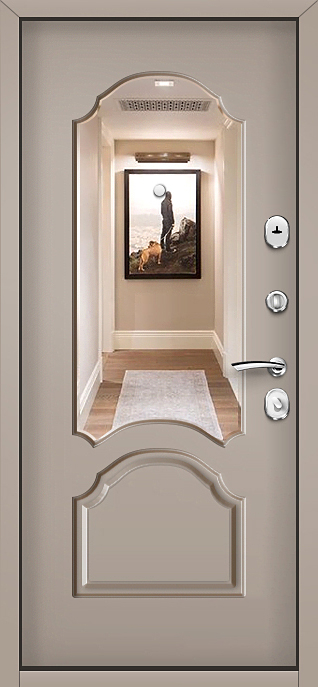 Дверь металлическая с зеркалом №69 создана для тех, кто ищет баланс между надежностью и удобством. Она уверенно справляется с ролью защитного барьера для квартиры, офиса или частного дома, при этом оставаясь практичным элементом интерьера. Снаружи поверхность покрыта молотковым напылением, устойчивым к влаге и механическим повреждениям, что делает дверь долговечной даже при интенсивной эксплуатации. Внутри используется плита МДФ, добавляющая теплоты и визуальной гармонии. Зеркало на внутренней стороне решает вопрос удобства и экономии пространства, позволяя превратить прихожую в более функциональное место. Конструкция собрана на основе профильных труб и усилена стальным листом толщиной 2 мм, а два контура уплотнения надежно защищают от шума и сквозняков. Встроенный терморазрыв в полотне и коробке исключает промерзание, сохраняя комфортную температуру в помещении даже зимой. Дверь металлическая с зеркалом №69 от производителя: быстрое изготовление и монтаж в Котельниках, индивидуальные размеры, широкий выбор материалов и фурнитуры, официальная гарантия до 10 лет.