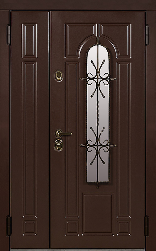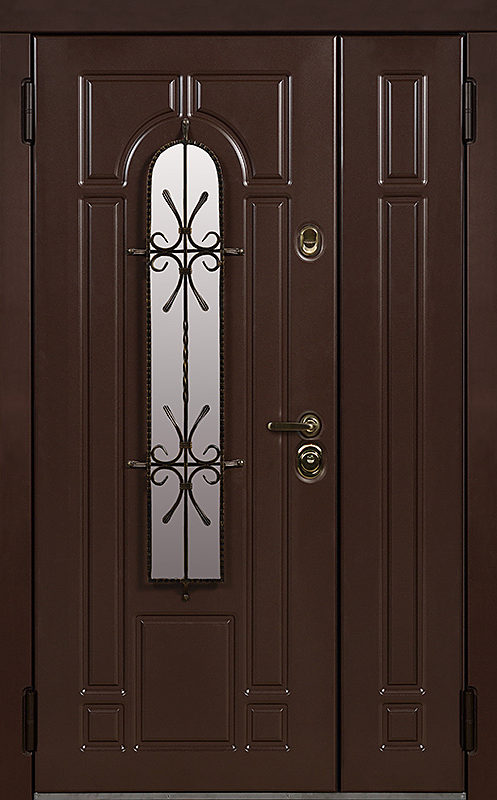 Эта металлическая двухстворчатая дверь с арочным стеклопакетом №15 представляет собой идеальный баланс между эстетикой и прочностью. Арочное стекло добавляет в её дизайн утончённость, а ковка в декоре придаёт изысканный, но в то же время крепкий и надёжный вид. Плита МДФ, используемая как для внешней, так и для внутренней отделки, не только сохраняет прекрасный внешний вид, но и устойчива к механическим повреждениям. Металлическая двухстворчатая дверь с арочным стеклопакетом №15 от производителя: быстрое изготовление и монтаж в Котельниках, индивидуальные размеры, широкий выбор материалов и фурнитуры, официальная гарантия до 10 лет.