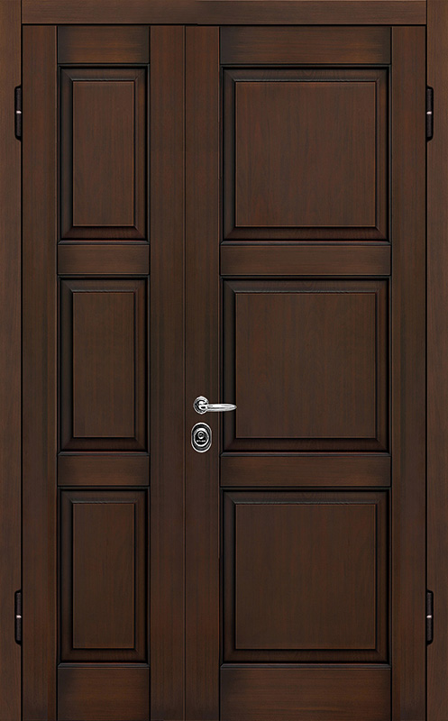 Двойная филенчатая дверь для загородного дома венге №7 сочетает в себе элегантность и прочность. Ее внешняя отделка выполнена из панелей МДФ с ПВХ, что придает двери современный вид, а также обеспечивает устойчивость к механическим повреждениям и долговечность. Каркас из профильной трубы 50х25 мм и полотно толщиной 2 мм гарантируют надежность и устойчивость к нагрузкам. Ребра жесткости из профильных труб 40х25 мм усиливают конструкцию, а уплотнение с двумя контурами защищает от проникновения влаги и пыли. Замки "Просам" и "Мосрентген" с тремя ригелями обеспечивают высокий уровень безопасности. В дверь можно добавить дополнительные элементы, такие как стеклопакет, зеркало или кованые детали, что позволяет адаптировать ее под любой интерьер. Терморазрывы в коробке и полотне способствуют лучшей теплоизоляции, обеспечивая комфорт в любое время года. Двойная филенчатая дверь для загородного дома венге №7 от производителя: быстрое изготовление и монтаж в Котельниках, индивидуальные размеры, широкий выбор материалов и фурнитуры, официальная гарантия до 10 лет.