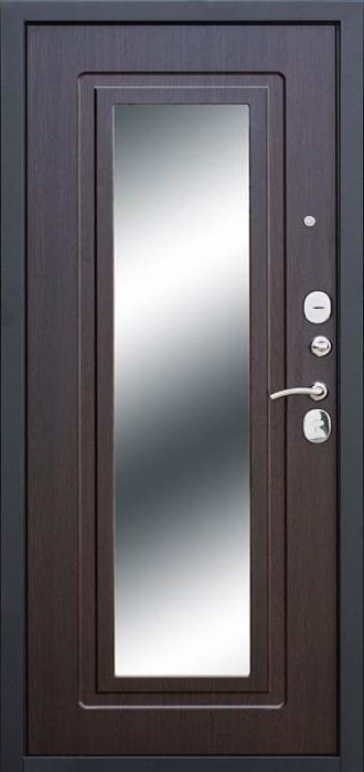 Дверь наружная с покрытием под дерево №3 — это стильное и надежное решение для вашего частного дома, квартиры или офиса. Конструкция двери включает прочный каркас из профильной трубы и металл толщиной 2 мм, что гарантирует долговечность и защиту от внешних воздействий. Внешняя и внутренняя отделка выполнены из плиты МДФ, что придает двери эстетичный вид и устойчивость к механическим повреждениям. Декор в виде зеркала подчеркивает её элегантность, а блокираторы и высококачественные замки (Просам и Мосрентген) обеспечивают высокий уровень безопасности. Дверь также оснащена двумя контурами уплотнения, что способствует хорошей изоляции. Возможность добавить стеклопакет, кованые элементы или видеодомофон делает этот продукт еще более универсальным и практичным для различных типов объектов. Дверь наружная с покрытием под дерево №3 от производителя: быстрое изготовление и монтаж в Котельниках, индивидуальные размеры, широкий выбор материалов и фурнитуры, официальная гарантия до 10 лет.