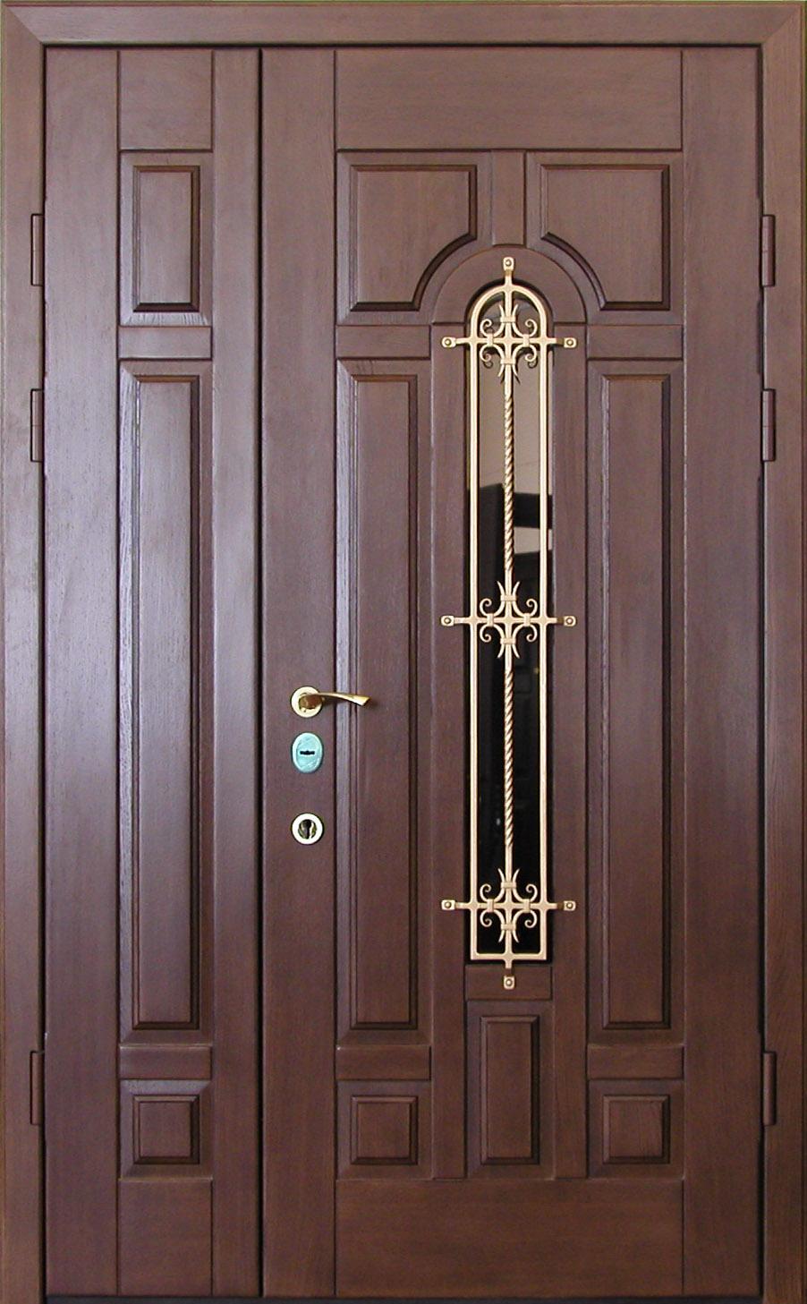 Входная дверь со стеклопакетом и патиной для загородного дома белая №29